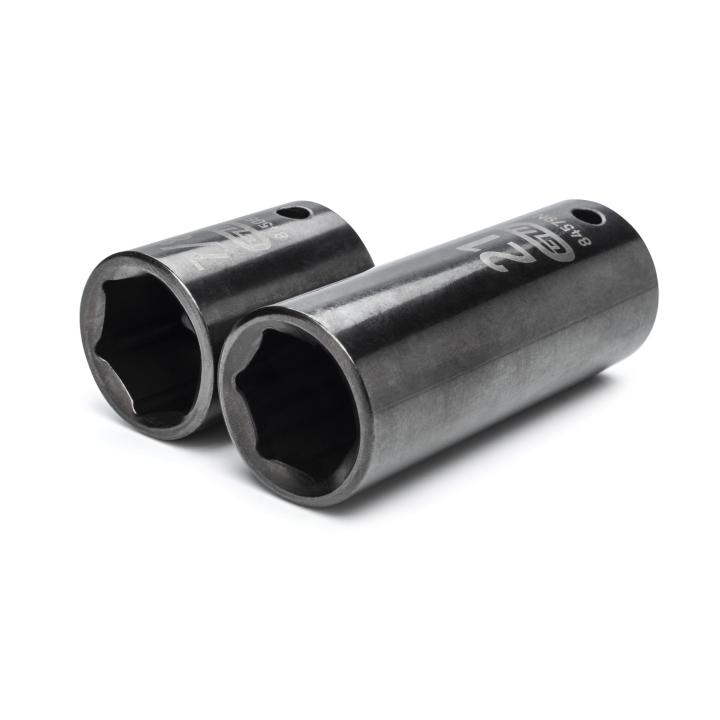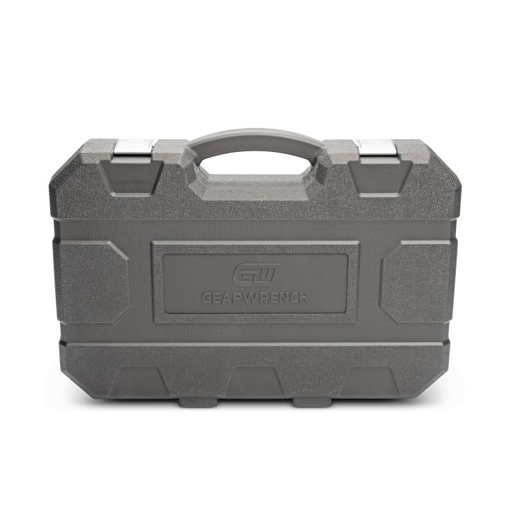The GEARWRENCH® 89095 65-Piece 1/2" Drive 6-Point SAE/Metric Standard/Deep Master Impact Socket Set offers a comprehensive selection of impact sockets for professional performance and strength. Constructed from chrome molybdenum alloy steel, these sockets provide exceptional durability. They feature highly visible laser-etched markings and secondary size hard stamping for easy identification, along with off-corner loading design to reduce fastener rounding. This master set includes standard and deep impact sockets, hex bit impact sockets, 3" and 5" impact extensions, and a universal joint, making it ideal for automotive, construction, and general maintenance tasks requiring reliable impact tools.