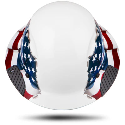 The DAX America Fiber Hard Hat is a full brim design made from fiber-reinforced resin, built for exceptional impact protection and comfort. It includes a 6-point suspension system, a synthetic leather comfort dome, and an oversized ratcheting dial for easy adjustments, even with gloves on.