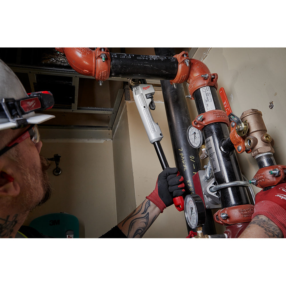 The MILWAUKEE CHEATER Aluminum Adaptable Pipe Wrench is the most adaptable pipe wrench with an all-in-one design that delivers maximum productivity to the professional user. The CHEATER has a multi-length, quick slide handle that locks anywhere for the flexibility of an 11" or an 18" to 24" aluminum pipe wrench. The CHEATER features an overbite jaw offering the largest grip surface and dual coil springs for maximum durability and tool life. The lightweight aluminum body and tether-ready handle loops make the CHEATER Adaptable Pipe Wrench ready for the jobsite..