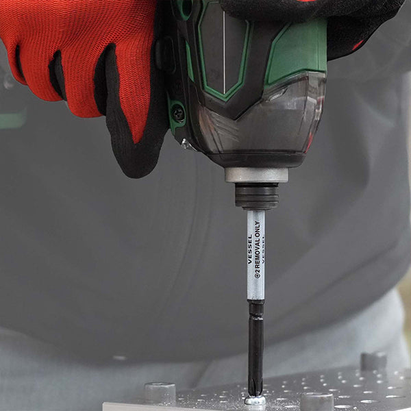 The Vessel® HZB10P01 Impact Driver is a precision hand tool designed for high-torque applications with impact drivers, featuring a 1/4" hex shank for secure bit retention and compatibility with standard power tools. Made from high-quality chrome vanadium steel with a black phosphate finish for corrosion resistance, it provides reliable performance in automotive, electrical, and general assembly tasks. The ergonomic handle with rubber grip reduces fatigue during extended use, and the slim profile allows access in tight spaces. Ideal for professionals needing durable, accurate driving without stripping fasteners.